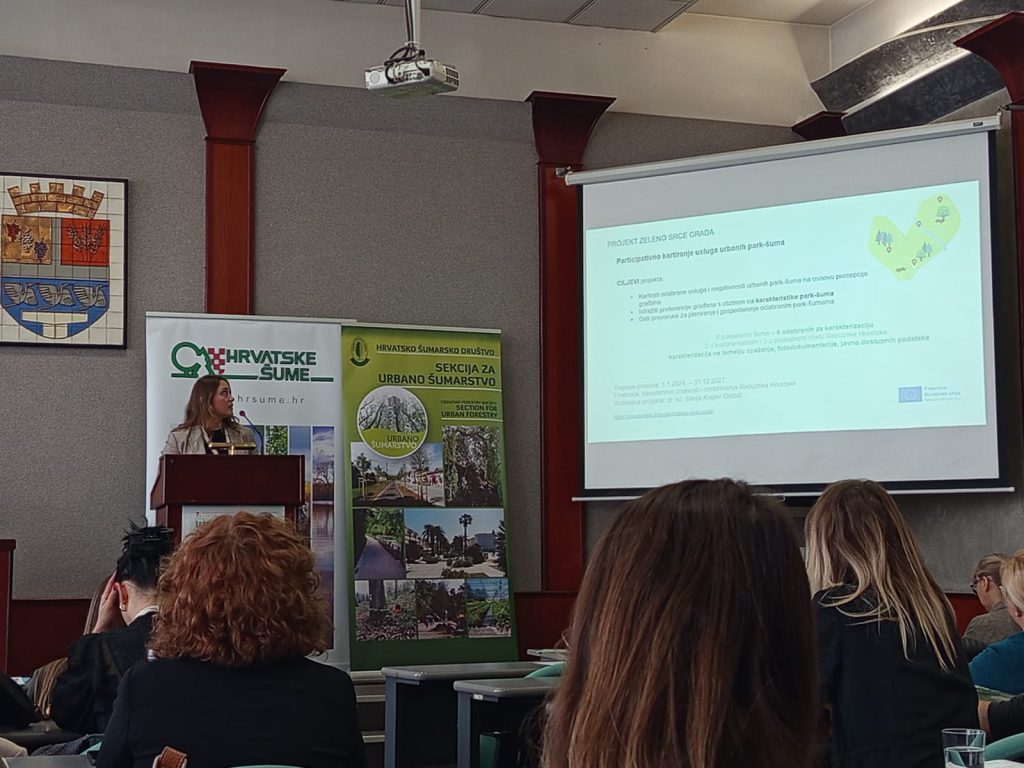 Prvog dana skupa, dr. sc. Martina Kičić održala je prezentaciju pod nazivom „Karakterizacija šuma i park-šuma u gradovima u Republici Hrvatskoj“ u kojoj je predstavila rezultate fizičkih karakteristika odabranih projektnih lokacija i rad na stvaranju baze podataka o odabranim šumama i park-šumama u sklopu projekta ZELENO SRCE GRADA. Uz prezentaciju rezultata rada, dr. sc. Kičić predstavila je i projekt te najavila buduće aktivnosti.